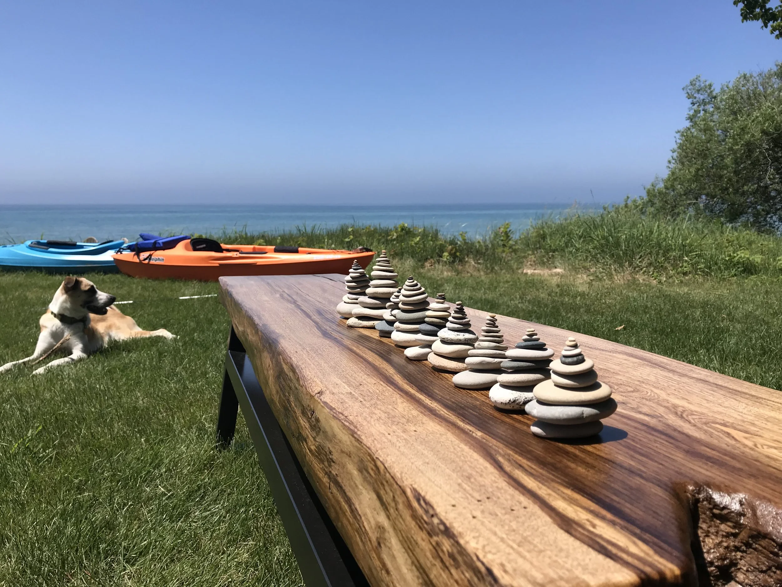 Hi, I’m Dane. I beach comb along the shores of Lake Michigan, collecting driftwood and rocks that catch my eye. Each one becomes something new, shaped by both the lake and my hands. I find peace turning them into unique pieces that reflect the beauty I first saw in them.